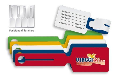PV 277 - Porta Nome per Valigia Neutro in Devon fornito a 4 posizioniF.to 9x6 Conf. Pz 1.000 - Col. BL-BI-RO-GI-VE