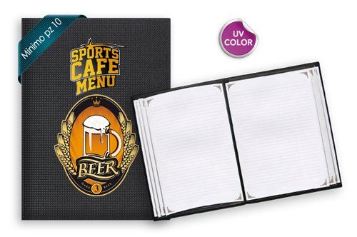 PM 273 CA UV - Portamenù 6 buste Stampa UV 1 lato, in Carbonio, A4F.to 24,5 x 32 - Conf. Pz 10 - Col. BI-ARG-NE