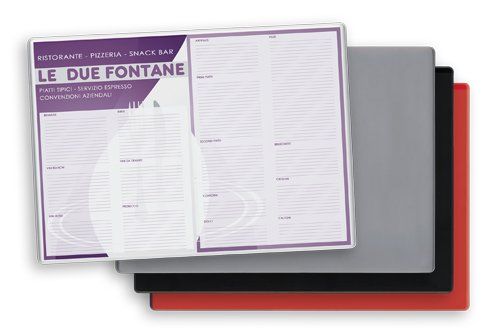 PM 291 - Portamenù con 4 buste, Neutro, in PVC Trasparente, F.to A4F.to 22 x 30,5 - Conf. Pz 50 - Col. Trasp.