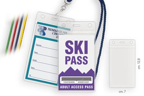 PC 262 - Porta Nome Tracolla, Bloccaggio a Graffa, in TrasparenteF.to 7 x 12,8 - Conf. Pz 200 Col. BL-RO-GI-VE