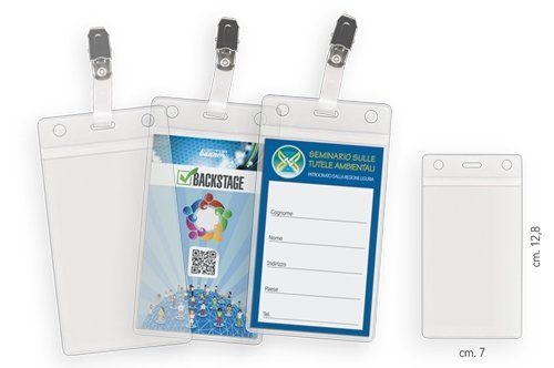 PC 333 - Porta Nome Congresso, Clip in Plastica, in TrasparenteF.to 9 x 8 - Conf. Pz 500 - Col. BL-RO-GI-VE